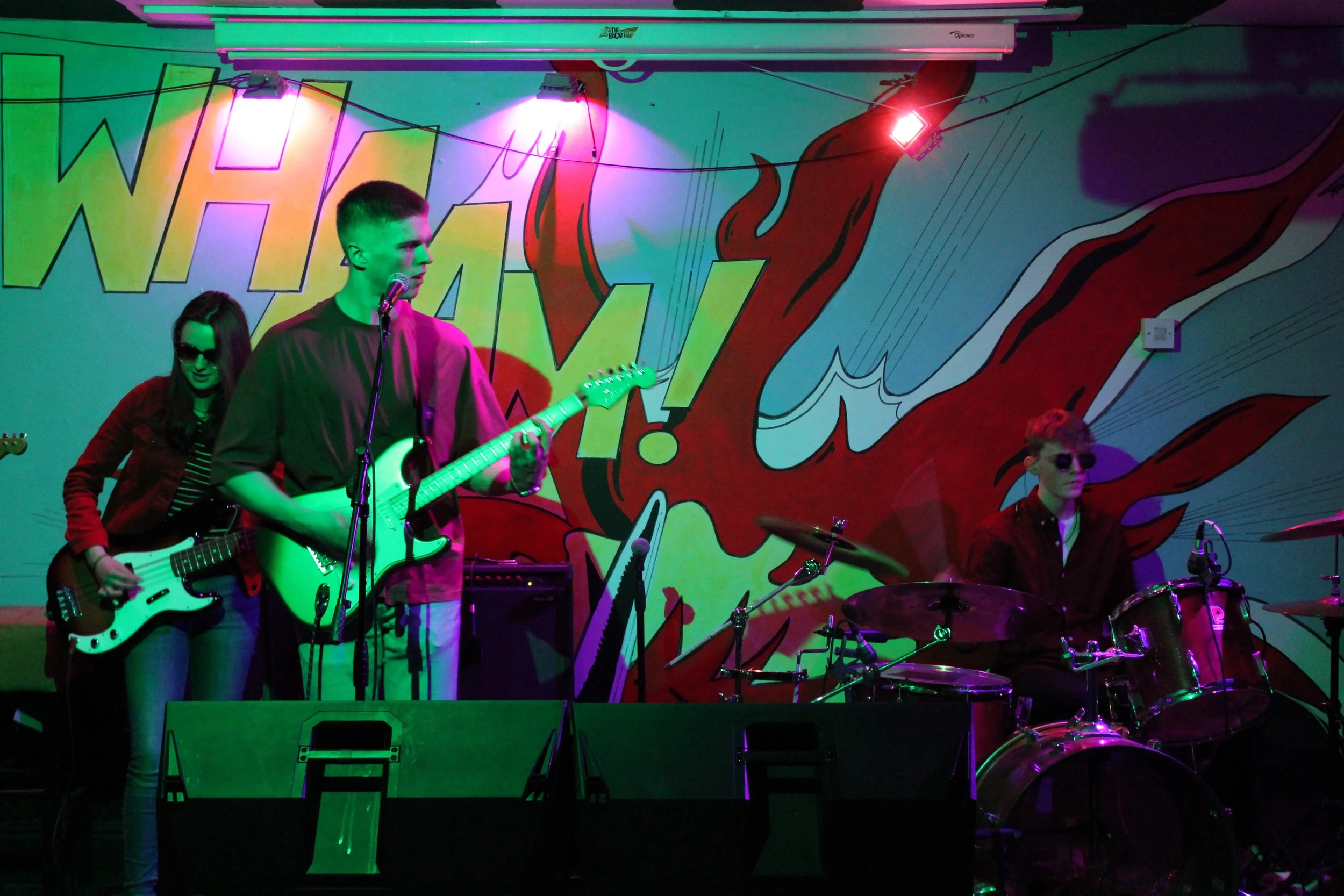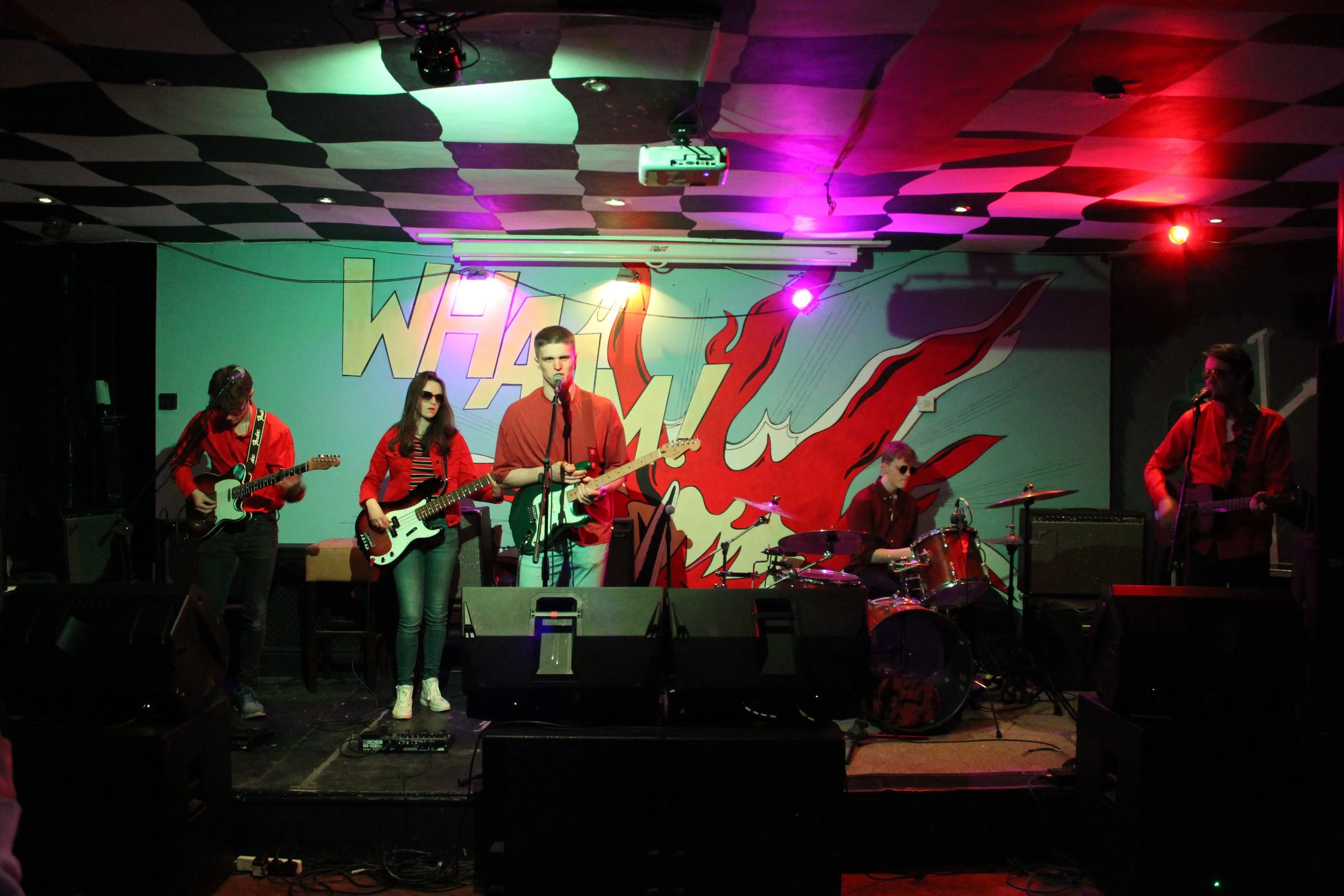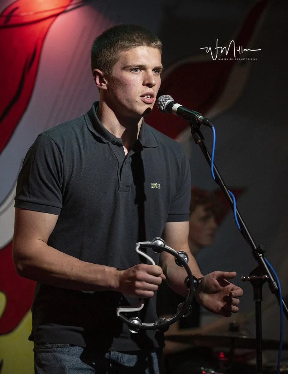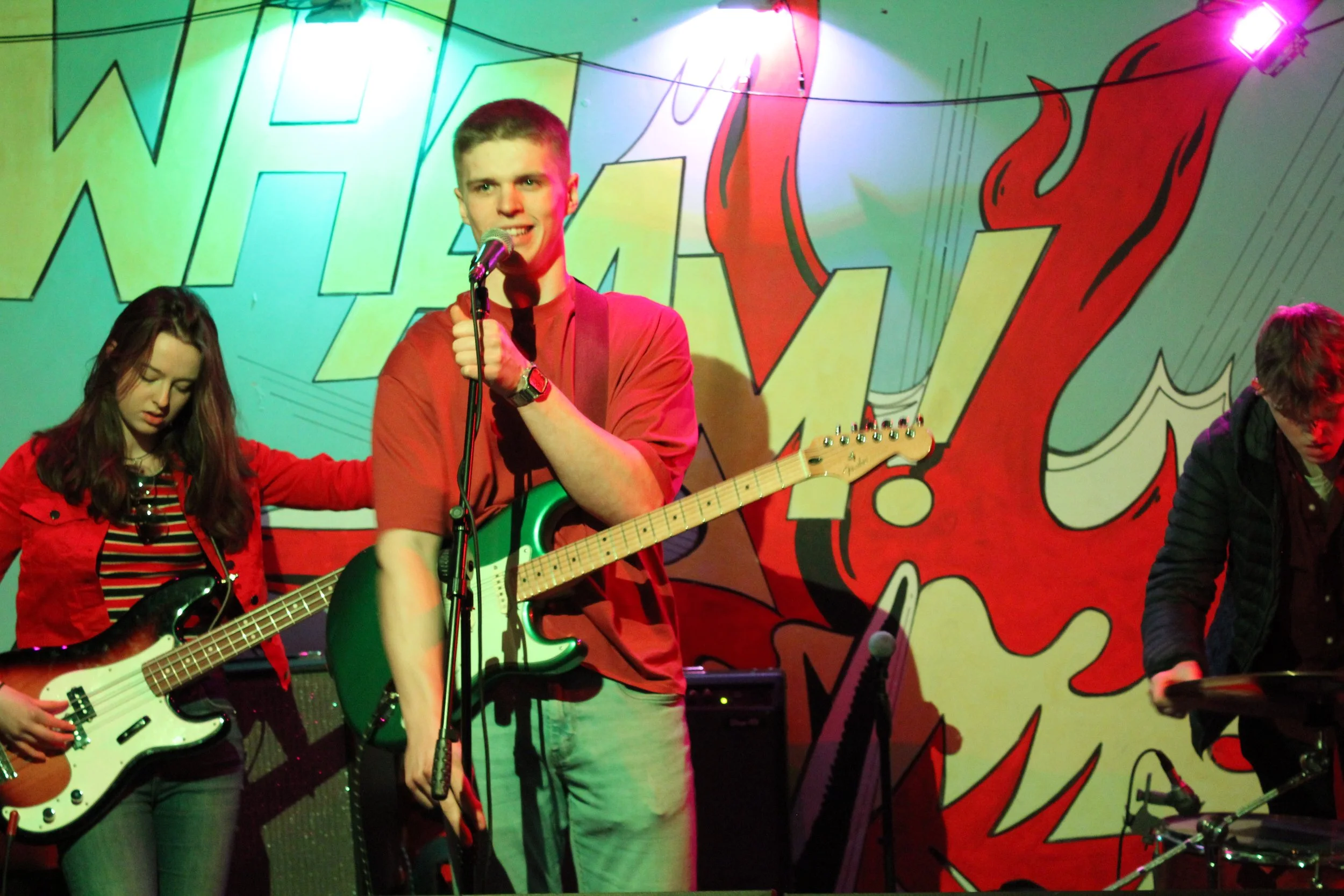 Sam Timson, main vocalist and rhythm guitar, has a powerful voice and fronts the group with confidence.