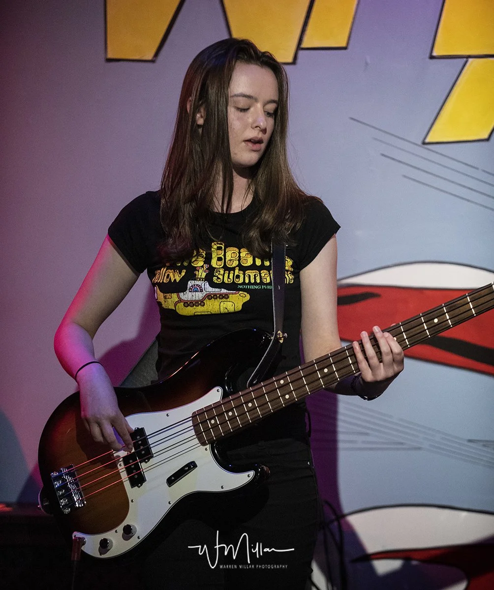 Josie Candlish, bass guitar, provides a solid foundation in perfect sync with...